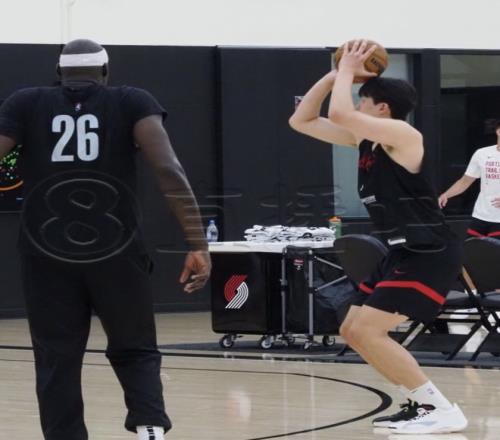 開拓者隊內(nèi)訓(xùn)練里,楊瀚森在跑戰(zhàn)術(shù),先是跑到弧頂,接到助教傳球之后出手三分,楊瀚森2次出手弧頂三分全部打鐵。接下來又回到底角位置去投三分,底角位置楊瀚森第一輪出手2次也只命中了1球,跟他一組的里斯投得那可是非常準的。