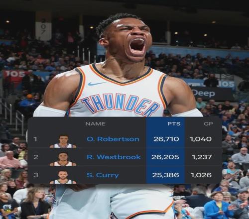 據(jù)統(tǒng)計(jì),威少距離歷史控衛(wèi)得分王僅差505分,給人家一個(gè)賽季的時(shí)間,完全可以實(shí)現(xiàn)登頂。