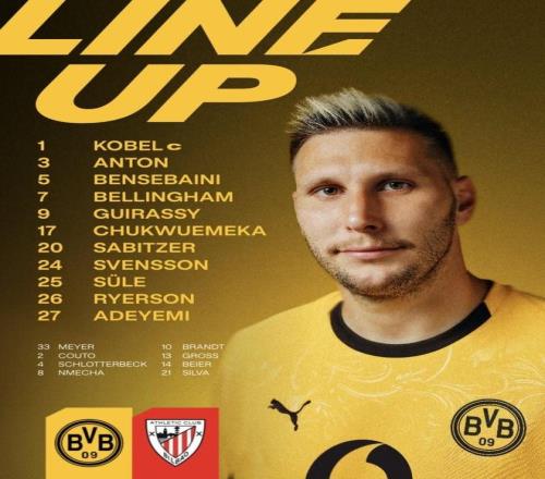 北京時(shí)間10月2日03:00,歐冠 聯(lián)賽階段 第2輪,多特蒙德主場(chǎng)迎戰(zhàn)畢爾巴鄂競(jìng)技,賽前雙方球隊(duì)首發(fā)名單公布如下: