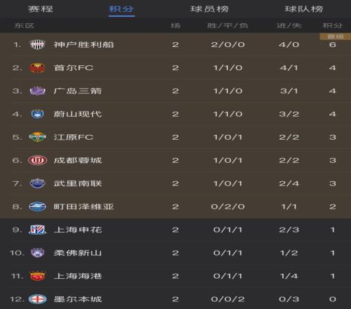 其他球隊(duì)方面,日本3支參賽隊(duì)開(kāi)賽2輪依然不敗。神戶(hù)勝利船取得2連勝,廣島三箭1勝1平,町田澤維亞則是2連平。