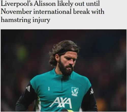 TA記者DO發(fā)文,利物浦門將阿利松腿筋受傷,他可能要到11月份的國(guó)際比賽日后才能復(fù)出。