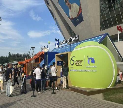而走進中國網(wǎng)球公開賽的西廣場,最直觀的感受是不知道喝什么好。往左走是品品香的白茶攤位,往右是瑞幸的咖啡屋,不遠處還有「補水啦」的特別展位。
