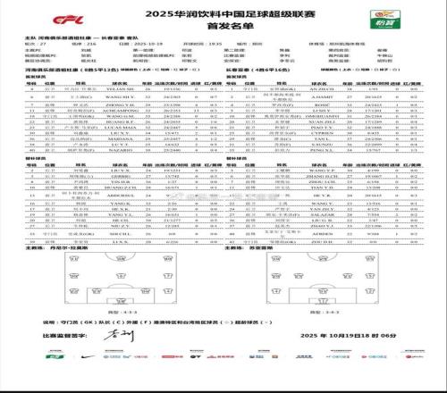 北京時(shí)間10月19日19:35,中超聯(lián)賽第27輪,河南主場(chǎng)迎戰(zhàn)長(zhǎng)春亞泰,賽前雙方公布首發(fā)陣容: