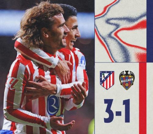 主場面對萊萬特,馬競上半場開局不錯,依靠一個烏龍球先下一城,隨后馬努-桑切斯頭球破舊主,比分1-1扳平。下半場,替補出戰(zhàn)的格列茲曼短短19分鐘完成梅開二度,幫助馬競3-1再度領(lǐng)先,這個比分也保持到比賽結(jié)束。據(jù)統(tǒng)計,格列茲曼已在西甲聯(lián)賽打進201球,成為歷史第11人。